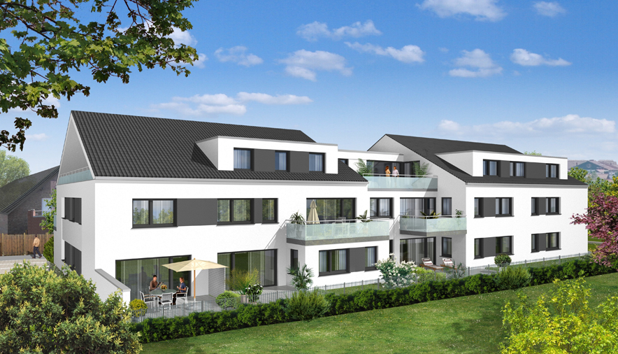 Das Wohnungsangebot umfasst ansprechende Zwei – Drei – und Vierzimmerwohnungen. Aufgrund der zeitgemäßen Architektur, den attraktiven Grundrissen, den schönen Terrassen und Balkonen gibt das Gebäude ein sympathisches und harmonisches Gesamtbild ab. Die Wohnungsgrundrisse sind durchdacht und gut proportioniert, um somit eine attraktive Innenraumgestaltung zu gewährleisten.